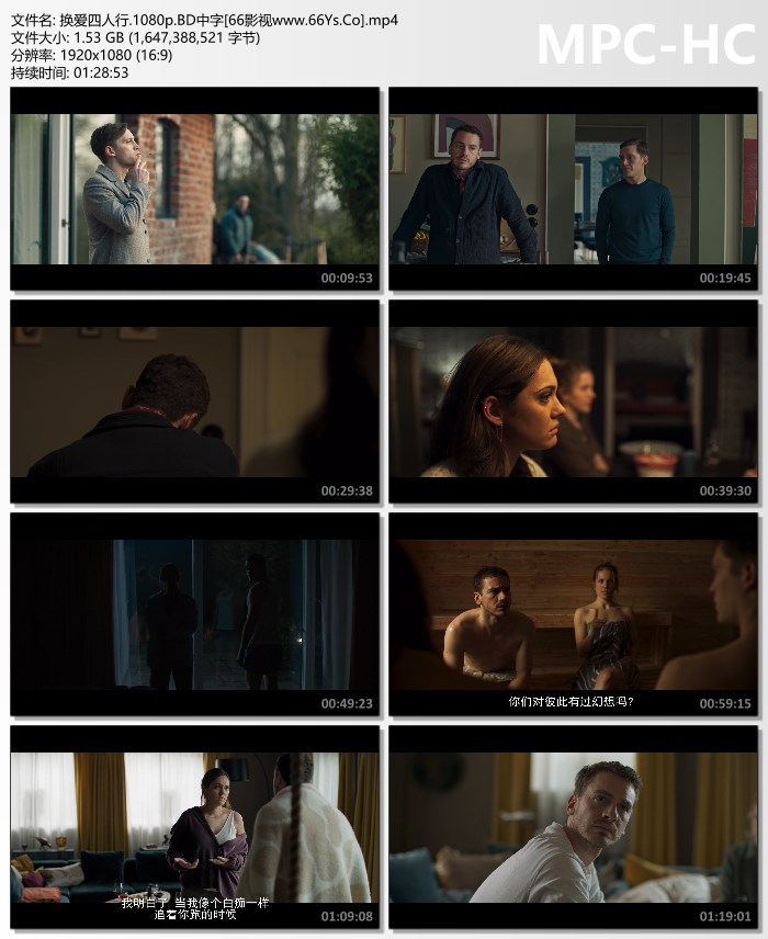 经过四个星期的伴侣交换,两对夫妇在一个偏远的海滨别墅再次见面,发现一切都变了。突然,他们的感受受到考验,他们的生活选择和期望得到重新评估。
