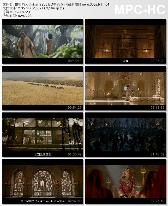 根据16世纪的同名史诗改编,讲述了斯里兰卡公主、拉杰普特人的王后帕德玛瓦蒂的倾城美貌导致德里苏丹发兵攻打她的夫君,欲将她夺为己有。苏丹虽然战胜,却没能得到帕德玛瓦蒂