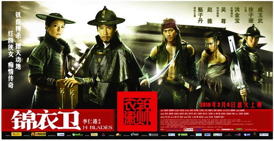 李仁港执导的浪漫武侠巨制《锦衣卫》预计将于2010年春节档期公映,《锦衣卫》英文名为《14 BLADES》,翻译过来就是"十四把刀",正是片中