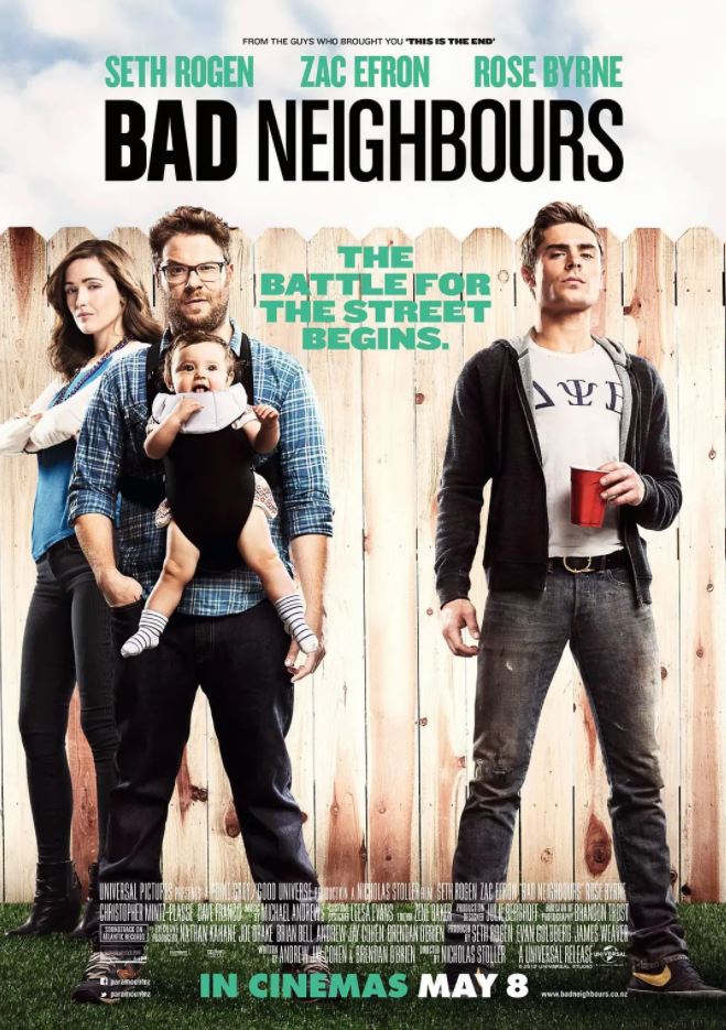 影片讲述了一个热血又放荡不羁的青年在几次巧合之下无意中影响了邻居一家生活的故事。塞斯·罗根与萝丝·拜恩在片中饰演这对新生儿年轻夫妇,而扎克·埃夫隆饰演的公子哥这二货的节奏将会给罗根夫妇惹不少麻烦。