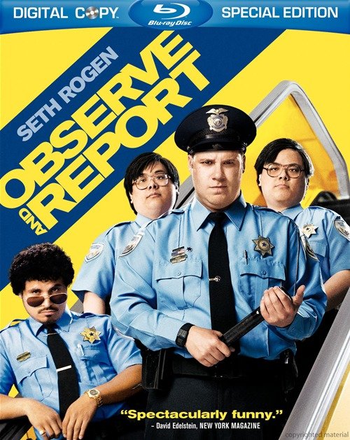 提起这部讲述商场保安与犯罪份子斗智斗勇的故事,熟悉北美电影的观众免不了要和早先在1月份公映的由凯文·詹姆斯主演的《百货战警》来做一番比较。这两部电影讲述的都是商场保安,而两部电影的男主角又都是走高大胖的恶搞路线,那么究竟两部电影有什么样的不同呢?塞斯·罗根说:“我想观众应该不会因为一部电影的主角是商场保安,另一部电影的主角也是商场保安,就觉得他们是一部电影吧。这两部电影除了这一点是一样的之外,其他方面有着太多太多的不同,其他的先不说,我觉得《监视与报告》里面的主角更不像一个英雄,他在故事里对付的人也只是一些小毛贼……而且,最重要的是,这部电影相当的儿童不宜。”