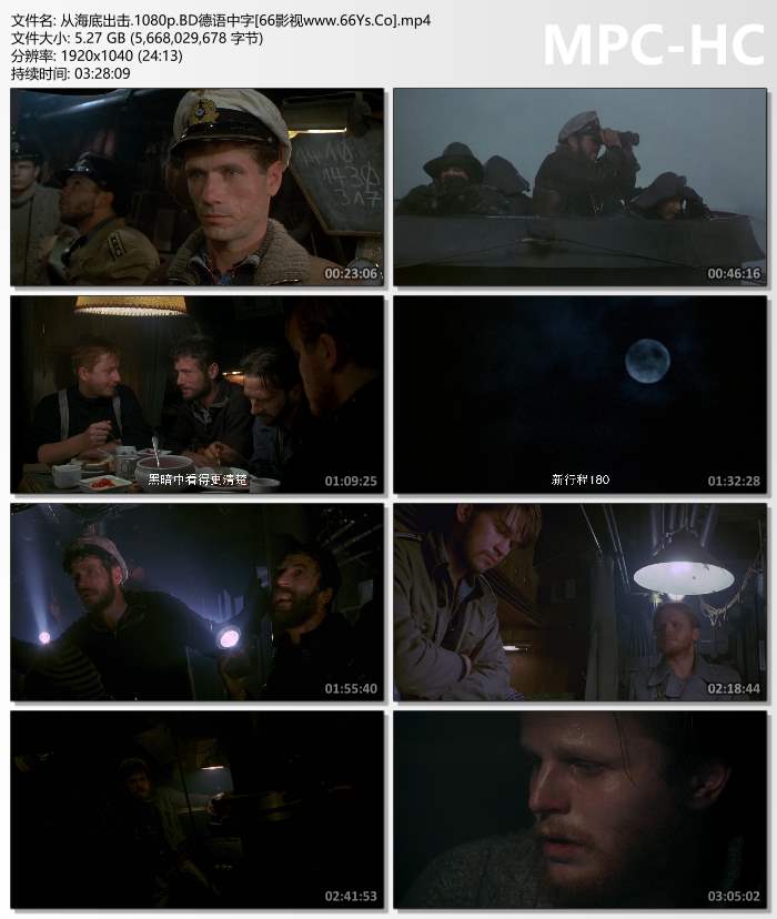 德国导演彼德森扬威国际影坛的作品,改编自战地记者布克海姆的畅销自传.影片用狭窄场景,取得了宏大场面所特有的巨片气氛,被誉为潜艇片的经典.原为六小时的电视片,现在以不同长度的版本流传.