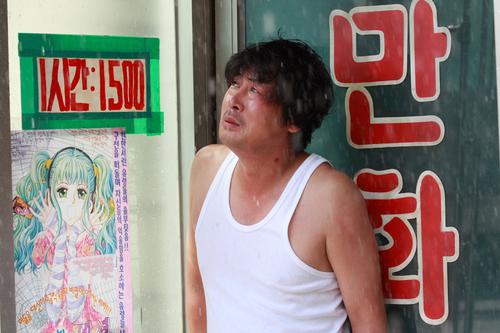 大器晚成的金允石凭借《追击者》中警察出身的拉皮条大叔一角横扫当年多个电影奖项的最佳男主角殊荣,他紧凑写实的的演技把在弥漫着不安和持续恐惧的社会中,身为普通人契而不舍的追查和求生的意志深描得令观众入戏难拔。《追击者》也成为愁云密布的韩国电影工业的2008年实至名归的救世主。与萧瑟悲凉的《追击者》里让人难以冷静、坐立不安的氛围不同的是,同是通过藉讲述罪案来批判社会现实的《奔跑的乌龟》在风格上更轻松诙谐,金允石本人也表示两个角色唯一的可比性就是都是警察身份,而比起之前的将癫狂、莽撞、理智和伤感参杂的皮条客角色,本片里的赵弼成更像是一直泡在淘宝网幸福生活中,偶尔天降大祸被逼担当起维护正义责任的“糊涂虫”。不过细心的人或许都能发现金允石向来平民英雄的形象依旧如此,没有好莱坞式英雄的超能力和无暇纯白的人格,有的是平常人这样那样的小毛病和臭脾气,不过在危险的时刻却阴差阳错地歪打正着成为被人歌功颂德的大人物。金允石当仁不让地步宋康昊、崔岷植等人后尘站在一线男星的位置。4月有宋康昊的《蝙蝠》、国民妈妈金慧淑的《母亲》在5月登场,金允石的这部《奔跑的乌龟》则成为6月档抢夺票房的主力。