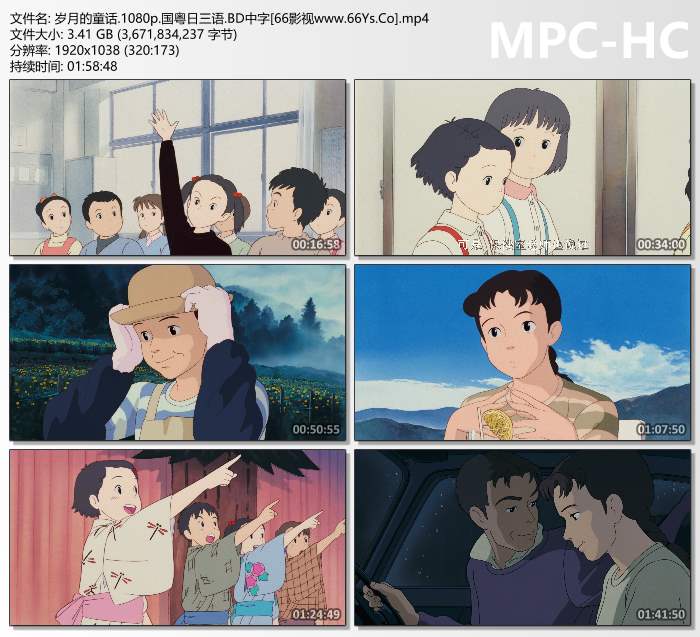 《岁月的童话》 这是一部由吉卜力工作室,日本著名动画片导演制作推出的清新动人的动画电影,以追忆女主人公在日本六十年代的小学往事为主,将支离破碎的小故事通过回忆串成一气。同时为了力求真实,对过去的社会背景、风气、流行事物都一一地回复重现在观众眼前。可惜国内的观众可能很少有机会体会到那个时代的日本,不能完全体会到制作人员的匠心独到,少了一份亲切感。本片是1991年日本最卖座的本土电影。
