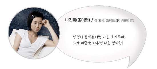 罗英姬的姐姐、结婚三年的家庭主妇,对威胁无数家庭幸福的夜总会恨得咬牙切齿。有着看透丈夫心里的能力,性格火爆、大胆。